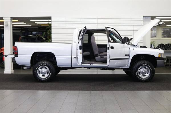 UP FOR GRABS IS A SUPER HARD TO FIND IN THIS SHAPE AND CONDITION AND LOW MILES ONE OWNER SINCE NEW CLEAN TITLE AND CARFAX CERTIFIED 2000 DODGE RAM 2500 QUAD CAB SHORT BED SLT LARAMIE 4X4 WITH ONLY 116K MILES, LIKE NEW IN AND OUT, NO SIGNS OR RECORDS OF ANY ACCIDENTS OR DAMAGES EVER, NO MAJOR DENTS OR SCRATCHES AT ALL, LIKE NEW NON-SMOKER INTERIOR FREE OF ANY RIPS OR TEARS OR ANY BROKEN PLASTICS AND A PERFECT DASH, ALSO THE UNDER CARRIAGE OF THIS RAM IS 100% RUST & CORROSION FREE AND SHOWS NO SIGNS OF EVER BEING DRIVEN OFF ROAD OR IN MUD OR SNOW. THIS RAM IS 100% STOCK AND ALL ORIGINAL WITH PAINT IN EXCELLENT CONDITION, NO ENGINE OR SUSPENSION MODIFICATIONS AT ALL. THIS IS THE SLT MODEL LOADED WITH ALL OPTIONS OFFERED FOR THE YEAR INCLUDING ALLOY WHEELS, TINTED WINDOWS, REAR SLIDER, HEATED MIRRORS, 6-PASSENGER SEATING, SPRAY IN BED LINER, UPGRADED CD PLAYER, NEWER BF GOODRICH KO2 10-PLY TIRES ALL THE WAY AROUND AND MORE. THE BED OF THIS RAM IS IN NEW CONDITION, IT HAS NEVER HAD A 5TH WHEEL OR GOOSENECK INSTALLED AT ALL. WE JUST DID A FRESH SERVICE ON THIS RAM INCLUDING A NEW AIR FILTER / WIPER BLADES / COOLANT FLUSH / BRAKE FLUID FLUSH / AC SERVICE AND RECHARGE AND MUCH MORE. THIS RAM IS A GREAT SURVIVOR AND HAS ALWAYS BEEN GARAGE KEPT, COLLECTOR QUALITY ALL ORIGINAL, IT ALSO COMES WITH ALL ORIGINAL BOOKS AND MANUALS AND ORIGINAL WINDOW STICKER.