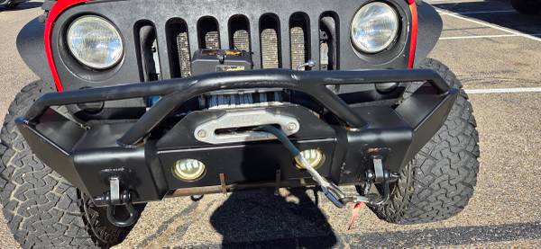 2012 Jeep Wrangler 4 door fully Rino lined inside and outside!!! This badass Jeep is lifted on 35" tires, has a winch, possible gears, custom bumpers, extra off-road lights, Bestop brand soft top...