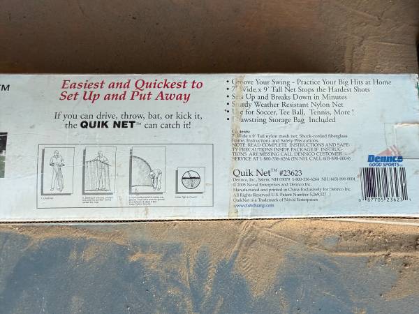 I am selling a brand-new Club Champ Quick Multi-Sport Net. With this you can practice in your own backyard with the Quick Net from Club Champ. This multi-sport net has a quick set-up and take-down, so you can be playing in matter of minutes. With the ability to stop even the hardest shorts, this is a great practice net. This net is 9’ wide x 7’ tall, weather resistant, shock-corded fiberglass frame and strong steel base for indoor use. I am asking $30.00 OBO. I will not accept trades or will not deliver. If you have any questions, ONLY TEXT ME at show contact info