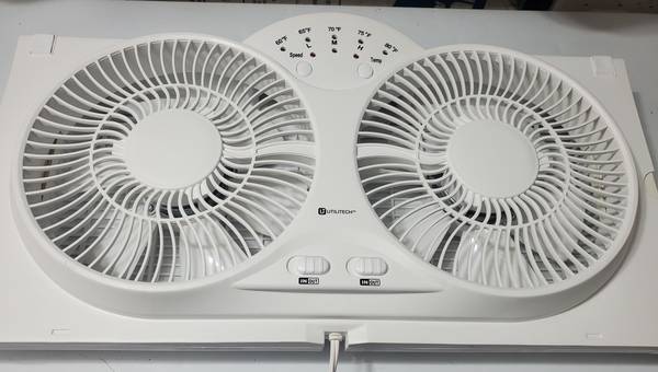 The Utilitech twin window fan provides cooling from the hot temperatures. By drawing cool air from the outdoors or exhausting stale indoor air when installed facing outward. Designed to fit almost all slider and double hung windows with extender panels for a safe, custom fit. With quiet operation it is perfect for use in bedrooms and living rooms. Stay cool with the Utilitech twin window fan.