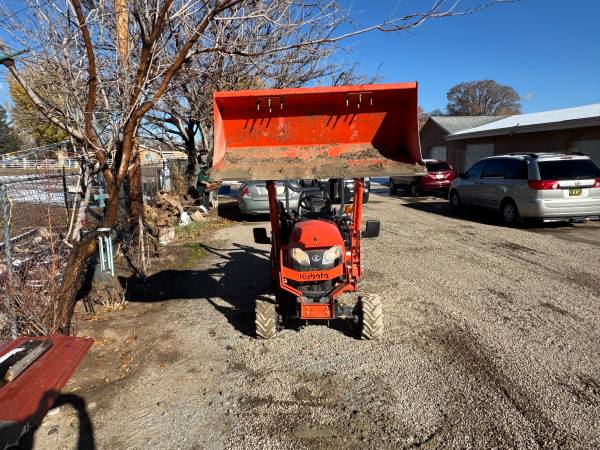 Kubota BX 1880 compact utility tractor. Bought new in 2023 at Kubota Mesa Tractor dealership in Albuquerque. With only 120 hrs of use. I have used it only around my 2 acre property, to spread gravel and clean horse corrals. Kept under covered car porch when not in use. Horses are gone, so no longer need the tractor.