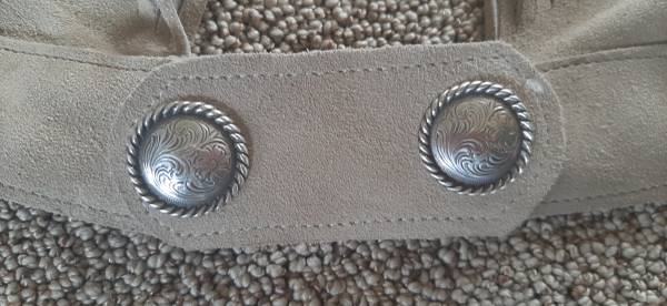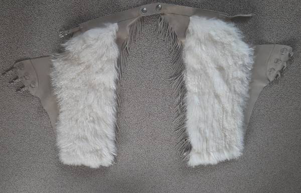 These are beautiful full length tibetan lamb woolies, backed by chap weight leather with silver conchos and buckle.