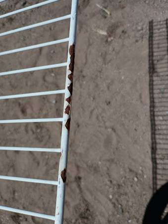 1 Closet Wire Rack Shelf with several areas where white plastic has come off exposing the wire but still very functional. There is a slight bend in the rack, but does not impede the functionality. It does not come with any hardware.