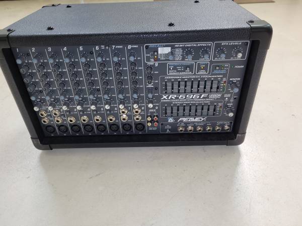 COMPLETE SOUND SYSTEM ! -- with the following equipment: 9 channel Peavey 1200W, XR696F powered mixer which has built-in Feedback Eliminator, multiple sound effects and Main/Monitor equalizers. Qty...