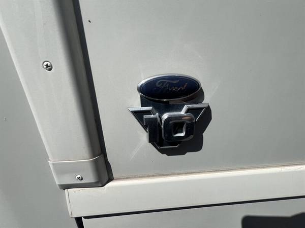 Factory-equipped features (standard specification overview) - Chassis and powertrain: Ford F-series motorhome chassis with 6.8L V-10 Triton engine, automatic transmission, power steering and power brakes. Factory-installed engine and chassis electronics for reliable drivability and highway performance. - Driver area: Two captain's chairs with armrests, adjustable seating for driver and passenger, tilt steering, cruise control, factory instrument cluster with tachometer and gauges, large exterior power mirrors, and factory rearview/backup camera system integrated into the dash. - Exterior construction and conveniences: Full-body painted exterior in Gold with factory graphics, large exterior storage bays accessible from both sides, roof access ladder, and factory-installed patio awning. Exterior utility hookups include shore power and city water connections, cable/satellite input and exterior service panels for convenience. - Slide rooms and living space: Multiple factory slide-outs to expand living and sleeping areas (providing additional interior space when deployed). Interior appointments include wood cabinetry, coordinated Brown upholstery and fabrics, and a neutral finish package from the factory. - Galley/kitchen: Complete factory galley with a multi-burner range and oven, over-the-range microwave, refrigerator/freezer, sink with countertop workspace, cabinet storage and pantry areas. Factory-installed appliances are set up for shore power, generator and propane operation where applicable. - Sleeping accommodations: Dedicated bedroom area with factory-installed bed (queen-sized walk-around bed in this floorplan), built-in wardrobe and closet storage, overhead cabinets, and privacy door. Convertible sleeping surfaces in the living/dinette area provide additional berths. - Bath and plumbing: Full bath with shower (skylight in shower area), vanity with sink, medicine cabinet, and a factory-installed toilet. Freshwater tank, gray and black holding tanks, water heater and city water hookup installed to factory specifications. - Climate control and insulation: Factory roof air conditioning(s), furnace with ducting for coach heating, and insulation appropriate to the model for year-round comfort. - Electrical and generator: Factory electrical package including shore power connection and circuit protection, coach battery system and on-board generator to supply 120V power off-grid (factory-specified generator model and capacity installed). - Entertainment and electronics: Factory-installed coach TV(s) in living area and bedroom, audio system (AM/FM/CD) with interior speakers, and wiring for optional satellite or exterior TV hookups. - Safety and convenience: Factory anti-lock braking system (ABS), factory-installed safety lighting, emergency exits, and coach entry steps. Built-in smoke and carbon monoxide detectors and fire extinguisher as per factory fitment.