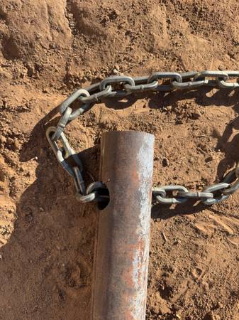 1/4” thick x48”x 4.5” outside diameter I was going to sink this in the ground and fill it with concrete to secure a little trailer at our old house. Chain not included Chain not included Chain not...